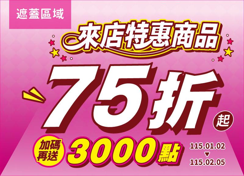 活動期間,會員至門市購買指定來店特惠商品, 單件即可獲得 3,000 點數(等值 10 元),點數可累贈,回饋無上限。